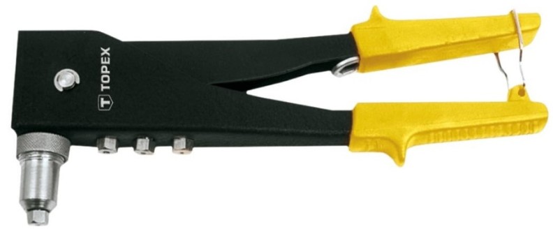 Заклепочник TOPEX 43E712 для алюминиевых заклепок диаметром 2.4, 3.2, 4.0, 4.8 мм. Двухпозиционная головка позволяет устанавливать заклепки в труднодоступных местах.
