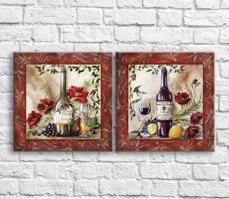 Картина ArtPoster Wine/flowers and fruits on a background of patterns (3478725)