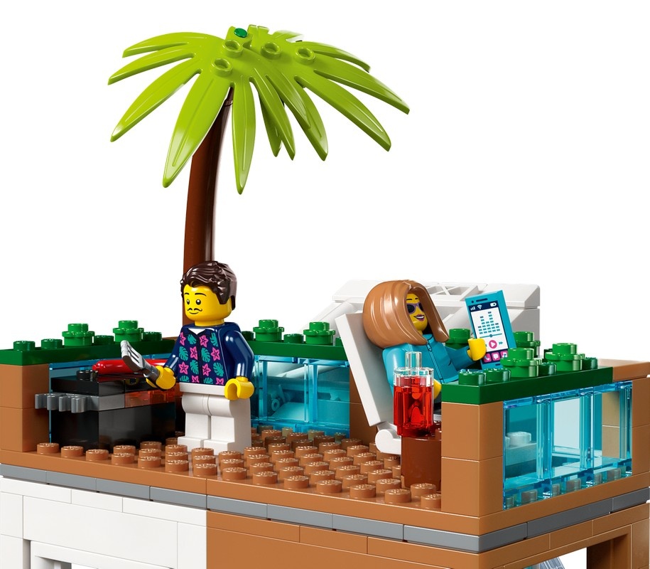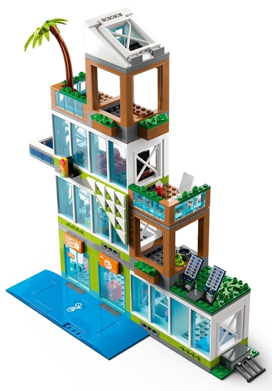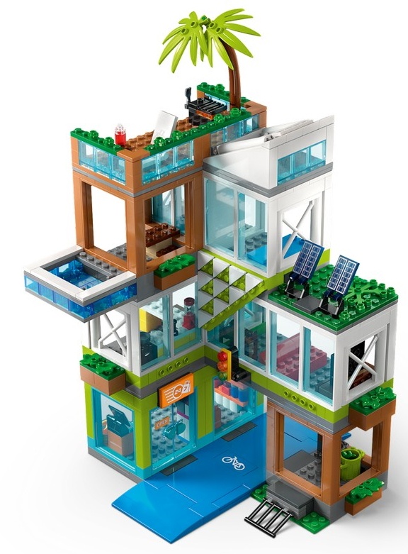 Размеры — после постройки многоквартирный дом имеет размеры более 34 см в высоту, 21 см в ширину и 20 см в глубину. Включает аксессуары для минифигурок LEGO® — этот игровой набор включает игрушечную бутылку сока, хот-дог, мобильный телефон, гантели, велосипед и самокат.