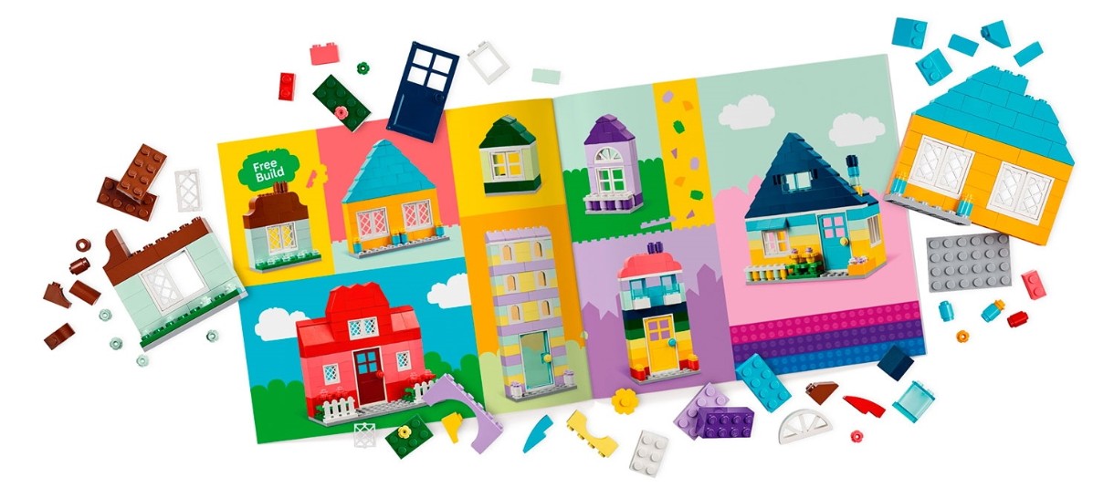 Дети следуют простым инструкциям и собирают шесть разных моделей разной высоты и формы. Творческая игра не должна прекращаться: они могут добавлять блоки, увеличивать дома и заменять двери, окна, крыши, сады и многое другое, чтобы изменить дизайн любого здания. В набор вошли восемь идей, которые вдохновят детей на дальнейшее развитие творческих способностей. Для еще большего удовольствия дети могут построить очень большой дом LEGO, используя большое количество кубиков и деталей из набора. Инструкции также можно найти в приложении LEGO Builder, которое позволяет детям масштабировать и вращать модели, а также отслеживать их прогресс.