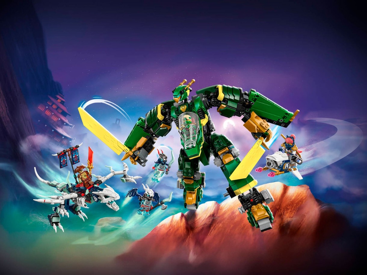 Конструктор LEGO Ninjago «Реактивный робот Ллойда» – это масштабный конструктор для детей от 9 лет и старше, вдохновленный захватывающими событиями третьего сезона мультсериала «Ниндзяго: Восстание драконов». Набор предлагает уникальную возможность создавать динамичные сцены воздушных и наземных сражений в мире ниндзя.