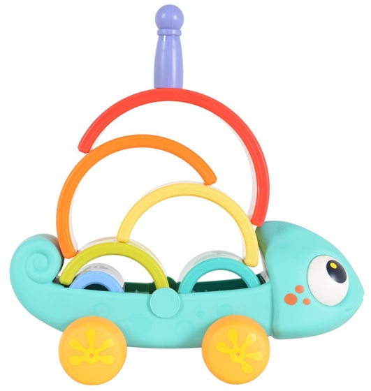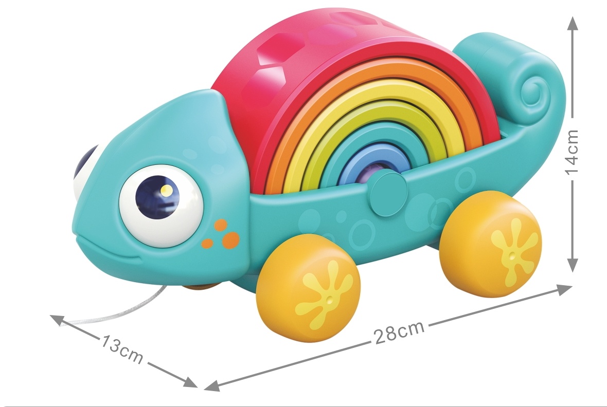 Эта красочная фигурка-тягач и штабелируемая башня от Hola Toys не только выглядят забавно, но и очень поучительны! С семью раскрашивающими арками радужного дерева ваш малыш сможет практиковать складывание арок и удержание равновесия, что способствует развитию и моторике вашего ребенка. Кроме того, семь цветных дуг помогут вашему малышу распознавать цвета! Куда бы ни пошел ваш ребенок, хамелеон будет следовать за ним благодаря удобной веревке.