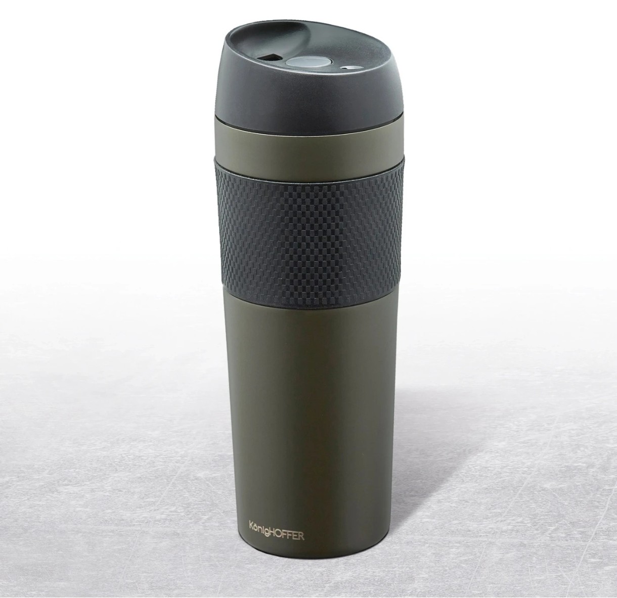 Кружка с двойными стенками и вакуумной теплоизоляцией Konighoffer Nevis имеет объем 450 мл. Она подойдет как для коротких, так и для длительных поездок, а также для кофе на работе. Модель герметична, а чтобы выпить, достаточно воспользоваться простым механизмом. Закрытие имеет форму, обеспечивающую комфортное утоление жажды.