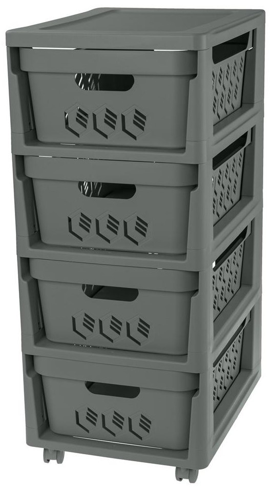 Комод на колёсах Luxe решит проблему организации вещей в гостиной, ванной, детской, гардеробе и даже на кухне. • Ширина 30 см идеальна для узких пространств • Имеет 4 вместительных съёмных ящика по 12 литров • Сзади имеется ограничитель для фиксации ящиков • Удобные ручки • Колёса вращаются на 360 градусов — лёгкий комод удобно возить • Верхняя плоскость может использоваться как полочка • Прост в уходе — достаточно протереть влажной тканью • Поставляется в индивидуальной коробке в разобранном виде; инструкция в комплекте. Легко собирается