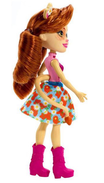 Самое время познакомиться с Коровкой Кейли и ее милым питомцем. Они так похожи! У куклы павлиний коровий носик, ушки, рожки и хвостик, а еще русые волосы, бежевая кожа и светло-карие глаза. Она одета в стильный лиловый топ с бантиком на шее, пышную голубую юбку с цветочным принтом и розовые сапожки.
