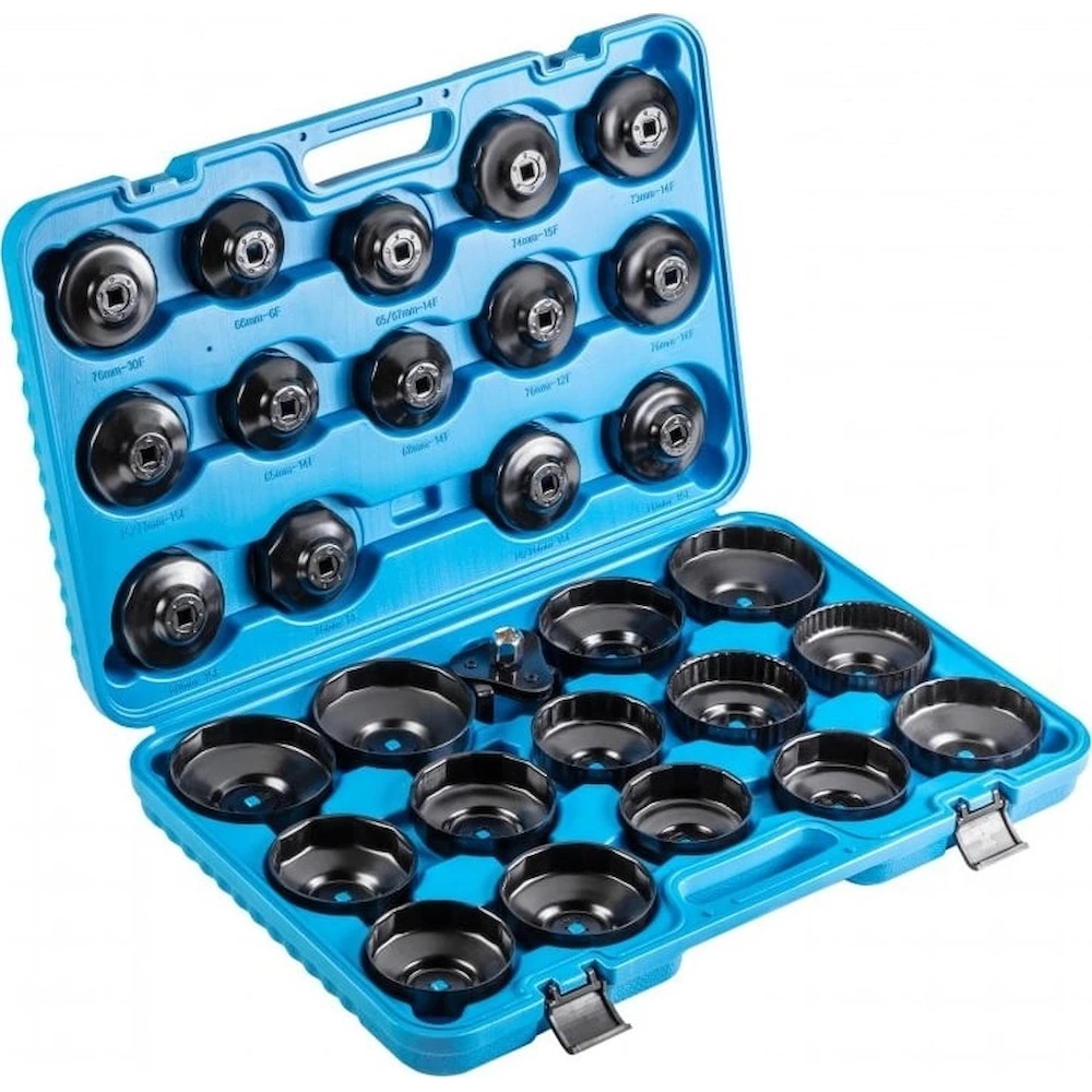 Набор из 30 гаечных ключей для масляных фильтров предназначен для профессионального использования в мастерских и автосервисах. Необходим для эффективного откручивания и закручивания фильтров в автомобилях и микроавтобусах.