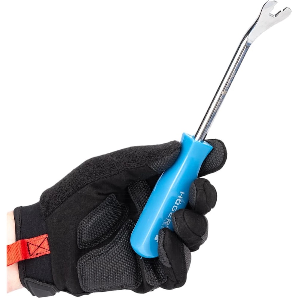 Съёмник предназначен для безопасного снятия обивочных зажимов, которые служат для непосредственного соединения внутренних частей автомобиля и его кузова. Благодаря применению съёмника из конструкции зажим-дюбель легко достается сам зажим, что позволяет снимать панели обивки без причинения вреда.