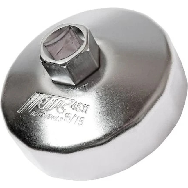 Съемник масляного фильтра 75мм 15-ти гранный чашка JTC 4611 применяется при диагностике автомобилей марок Форд, Мазда, Ленд Ровер, Вольво. Съемник работает совместно с воротком 1/2 дюйма или ключом 21 мм.