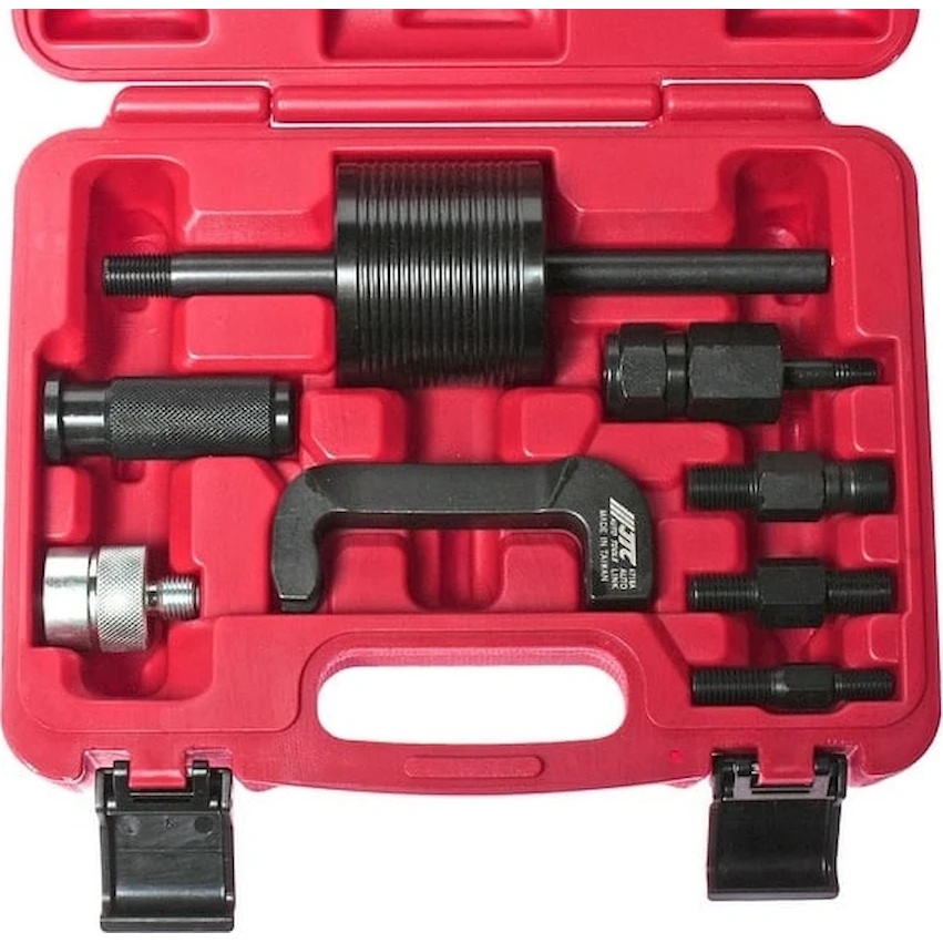 Съемник дизельных форсунок с адаптерами (MERCEDES) JTC 4718A - это отличный помощник в случаях, когда произошло "прикипание" распылителя топлива к двигателю, оснащенному системой Common Rail. Каждый из инструментов, входящий в комплект набора, выполнен из высокопрочных материалов, что гарантирует его повышенную износостойкость, и, как следствие, продолжительный рабочий ресурс. Предназначен для профессионального использования в сервисных центрах по ремонту и диагностике автомобилей Mercedes-Benz.
