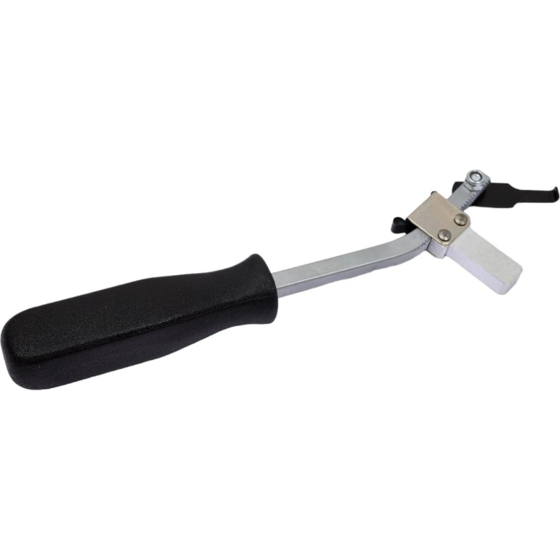 Универсальный съемник сальников распредвала и коленвала JTC 4722 гарантирует бережный и быстрый демонтаж требуемых элементов. Данное приспособление исключительно просто в использовании - достаточно зацепить снимаемый элемент крючком, упереть толкательную часть и нажать на рукоять. Габаритные размеры - 280х90х30 мм. Материал рабочей части съемника - металл.