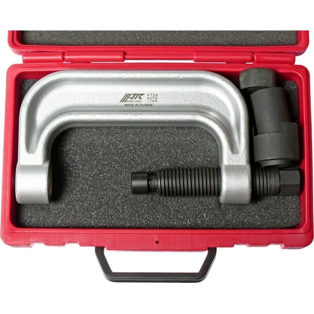 Приспособление для снятия и установки шаровых опор нижнего рычага MERCEDES W220,211 JTC 4728 обладает эргономичной конструкцией, позволяющей проводить работы по замене требуемых элементов непосредственно в автомобиле. Данная модель изготовлена из металла, который характеризуется высокой прочностью и устойчивостью к различным механическим воздействиям - это является залогом его продолжительной и надежной эксплуатации.