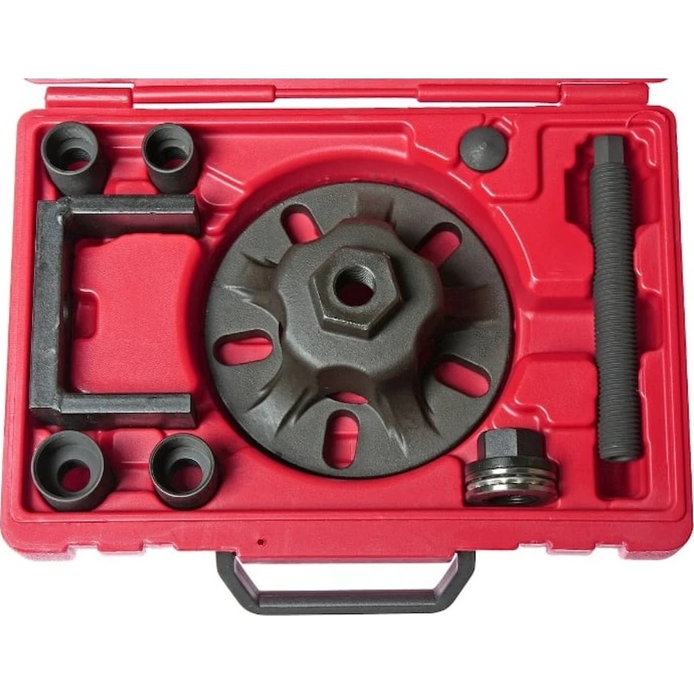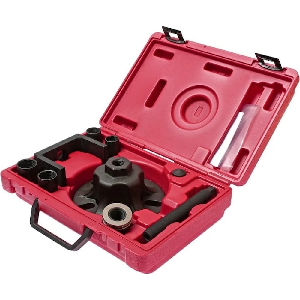 Универсальный съемник ступицы с адаптерами М22х1.5, М24х1.5, М27х1.5, М30х1.5 JTC 4873 - это приспособление профессионального уровня, которое используется во время обслуживания приводного вала широкого модельного ряда автомобилей. Данная модель проста и удобна в использовании, что делает ее отличным помощником в любом автосервисе. Материал инструмента - металл. Поставляется в прочном кейсе.