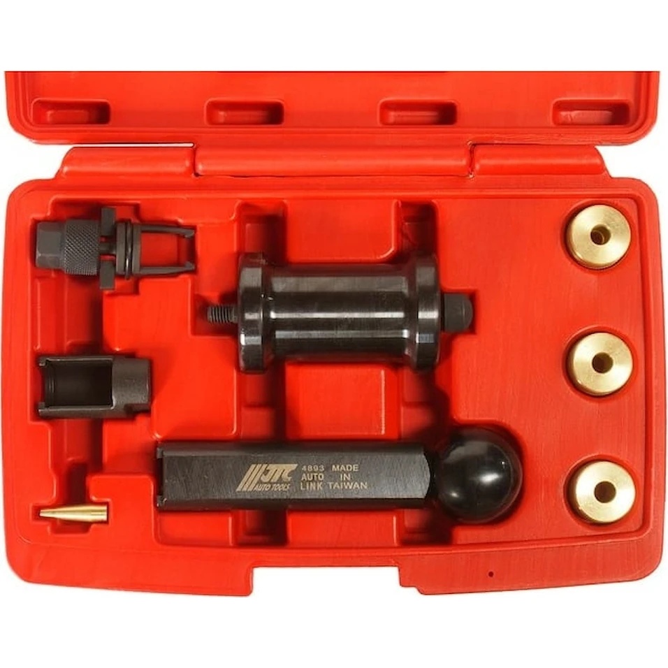 Набор для снятия форсунок двигателей типа FSI (VW, AUDI) JTC 4893 обеспечивает надежный хват механических распылителей топлива. Инструменты выполнены из материала, характеризующегося повышенной прочностью и износостойкостью, что является гарантией продолжительного срока службы всего комплекта. С помощью данных приспособлений демонтаж необходимых деталей осуществляется быстро и аккуратно.