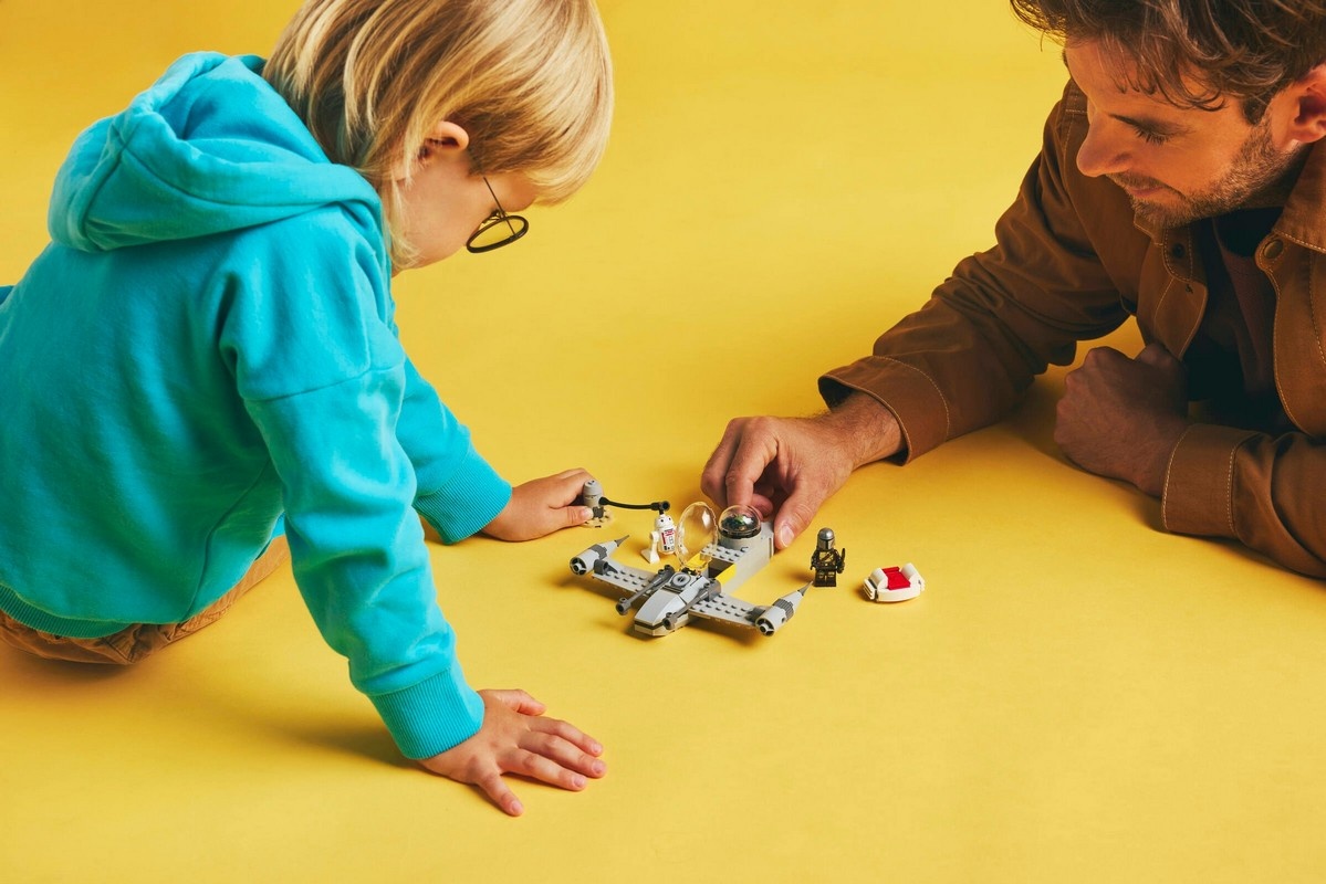 Этот набор для сборки модели истребителя N-1 Starfighter включает в себя 3 персонажа LEGO Star Wars: мандалорца с темным мечом и реактивным ранцем, Грогу с парящей коляской и R5-D4. Поместите мандалорца в открывающуюся кабину истребителя N-1 Starfighter, а Грогу посадите на пассажирское сиденье в задней части.