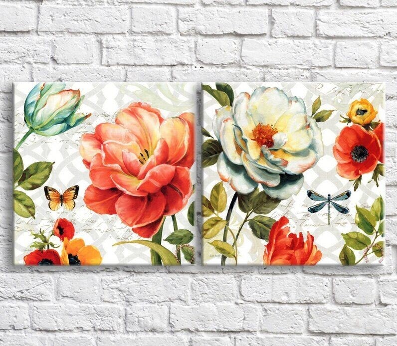 Картина ArtPoster Multicolored flowers and butterflies on a White background with text (3467780)