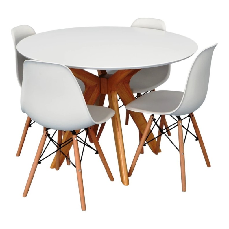 Комплект для столовой Evelin Raffles Round White/Bella Beech + 4 LC-021 White