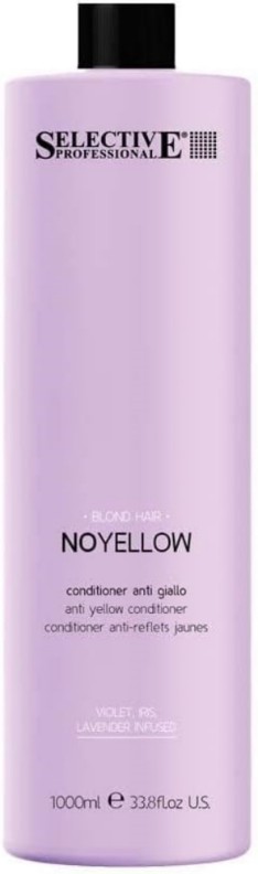 Кондиционер для волос Selective Professional No Yellow Conditioner — профессиональное средство для ухода за светлыми, обесцвеченными и седыми волосами, разработанное для нейтрализации нежелательных жёлто‑оранжевых оттенков и усиления холодного, блестящего тона. Он содержит нейтрализующие пигменты и экстракты ириса, фиалки и лаванды, которые глубоко кондиционируют и восстанавливают волос, защищают волосяное волокно, делают волосы более мягкими, эластичными, сияющими и облегчает расчёсывание. Защитная пленка улучшает текстуру волос и помогает сохранить чистый холодный оттенок блонда.