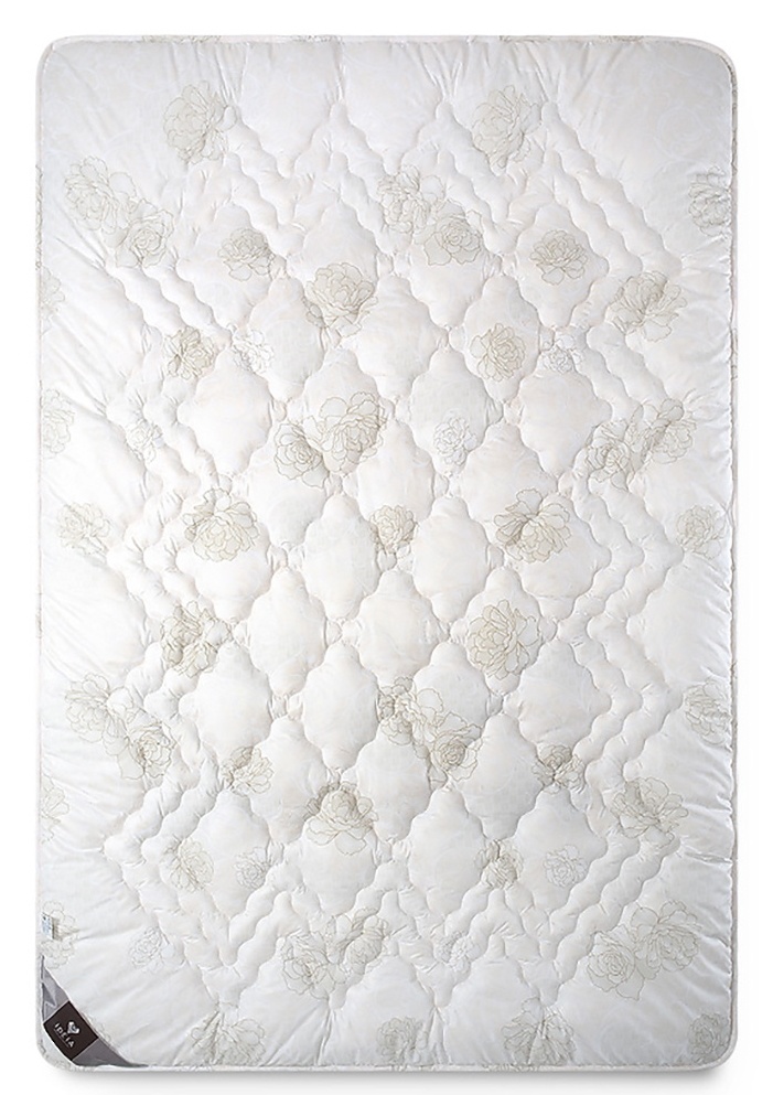 Ткань и наполнитель одеяла хорошо отводят лишнее тепло. Онo поддерживает комфортную температуру тела человека в любое время года. Онo выделяется принтом в виде розы. Имеет оригинальную декоративную подкладку, которая придает изделию элегантность.