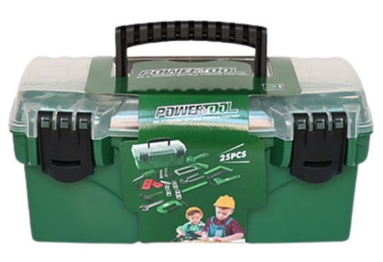 Развивающий набор инструментов для маленьких мастеров! В комплект входят 25 ярких и безопасных игрушечных инструментов, аккуратно упакованных в удобный зелёный пластиковый ящик с крышкой. Набор помогает развивать моторику, воображение и навыки ролевой игры.