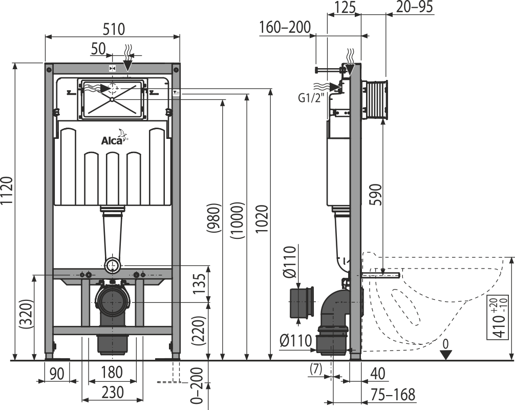 Инсталляция для подвесного унитаза Alcaplast Sadromodul AM101/1120 (83416)