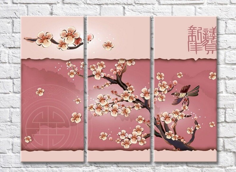 Картина Rainbow Sakura tree on pink background (500270)