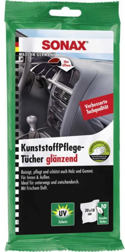 Влажные салфетки очищают, ухаживают и придают блеск за один прием. Для всех пластиковых, деревянных и резиновых деталей. Практичное решение для интерьера и экстерьера. Идеально подходит для поездок и между ними.