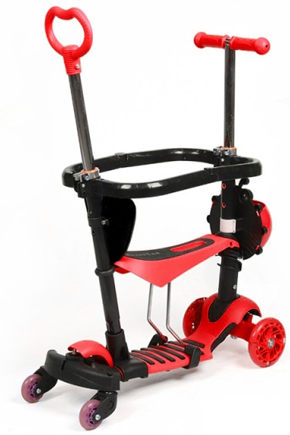 Самокат можно использовать как самокат, беговел, каталку с родительской ручкой, толкалку. Этот детский транспорт имеет дополнительное сиденье, которое можно установить и катать самых маленьких.
