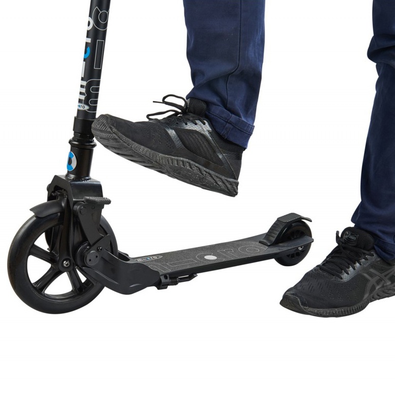 Предназначенный для взрослых, складной самокат для езды по городу весит всего 4,8 кг и выдерживает максимальную нагрузку до 100 кг. Руль регулируется от 69 до 100 см.