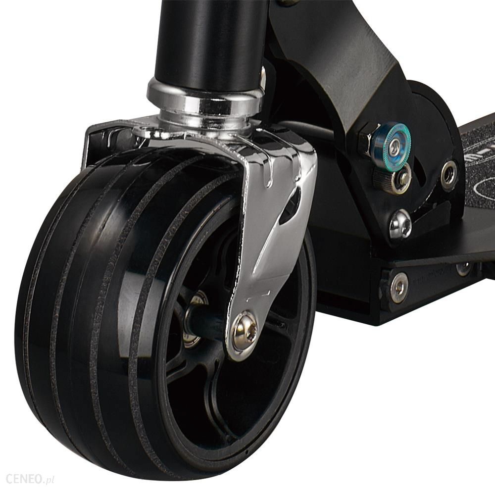 Очень широкие колеса обеспечивают устойчивость как на ровных поверхностях, так и на слегка неровных поверхностях и кубическом камне. Это также идеальный самокат для спуска по склонам, поскольку на тормозной колодке имеется резиновая вставка, предотвращающая перегрев при частом торможении. Кроме того, большая контактная поверхность гарантирует, что износ колеса, вызванный постоянным торможением, сведен к минимуму.