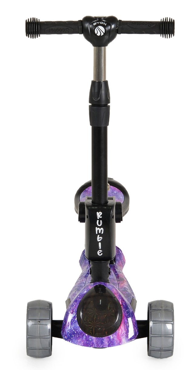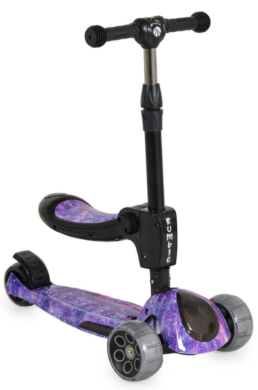 Самокат Rumble от Byox – это идеальный выбор для активных детей старше 3 лет. Он сочетает в себе безопасность, комфорт и веселье благодаря продуманной конструкции и множеству интересных функций. Самокат может использоваться как с сиденьем, так и в классическом вертикальном режиме – он подойдёт на разных этапах развития ребёнка.