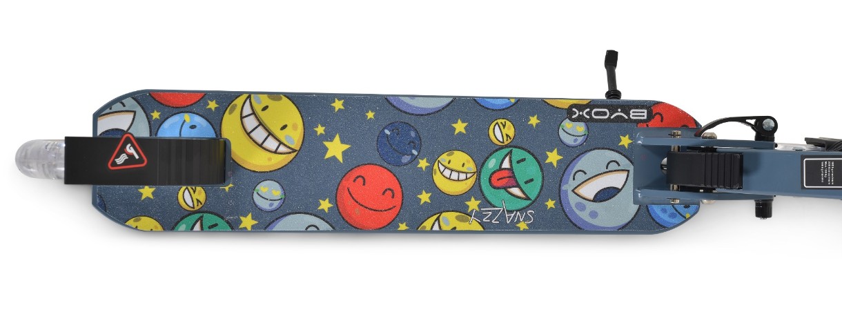 Самокат Moni Snazzy — идеальный выбор для активных детей от 8 лет и старше, которые ищут баланс между скоростью, комфортом и безопасностью. Лёгкая алюминиевая рама, двойная тормозная система и передняя подвеска обеспечивают плавное и стабильное передвижение даже по неровным дорогам.