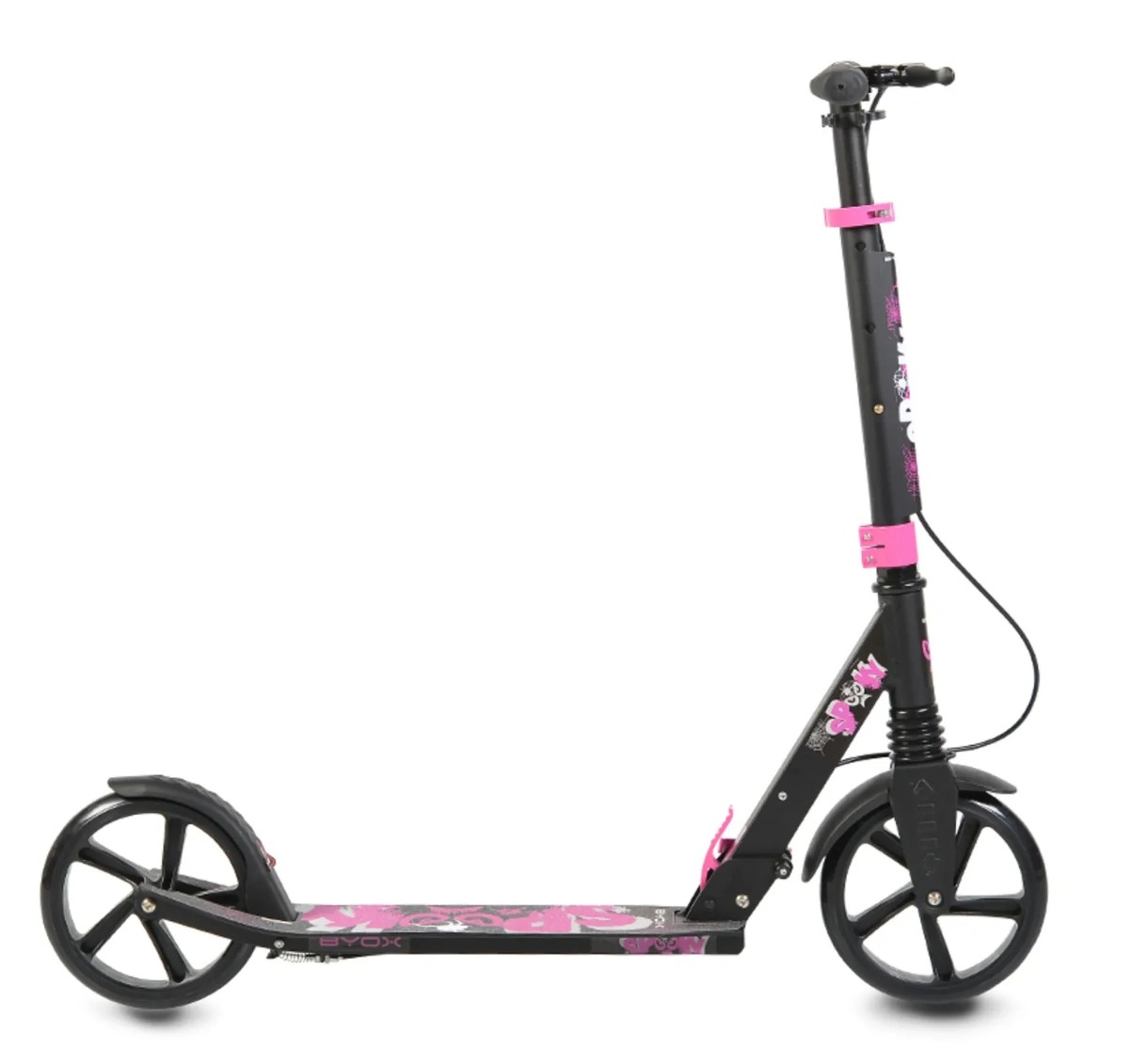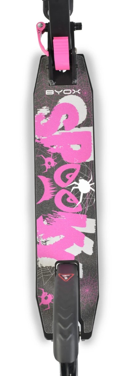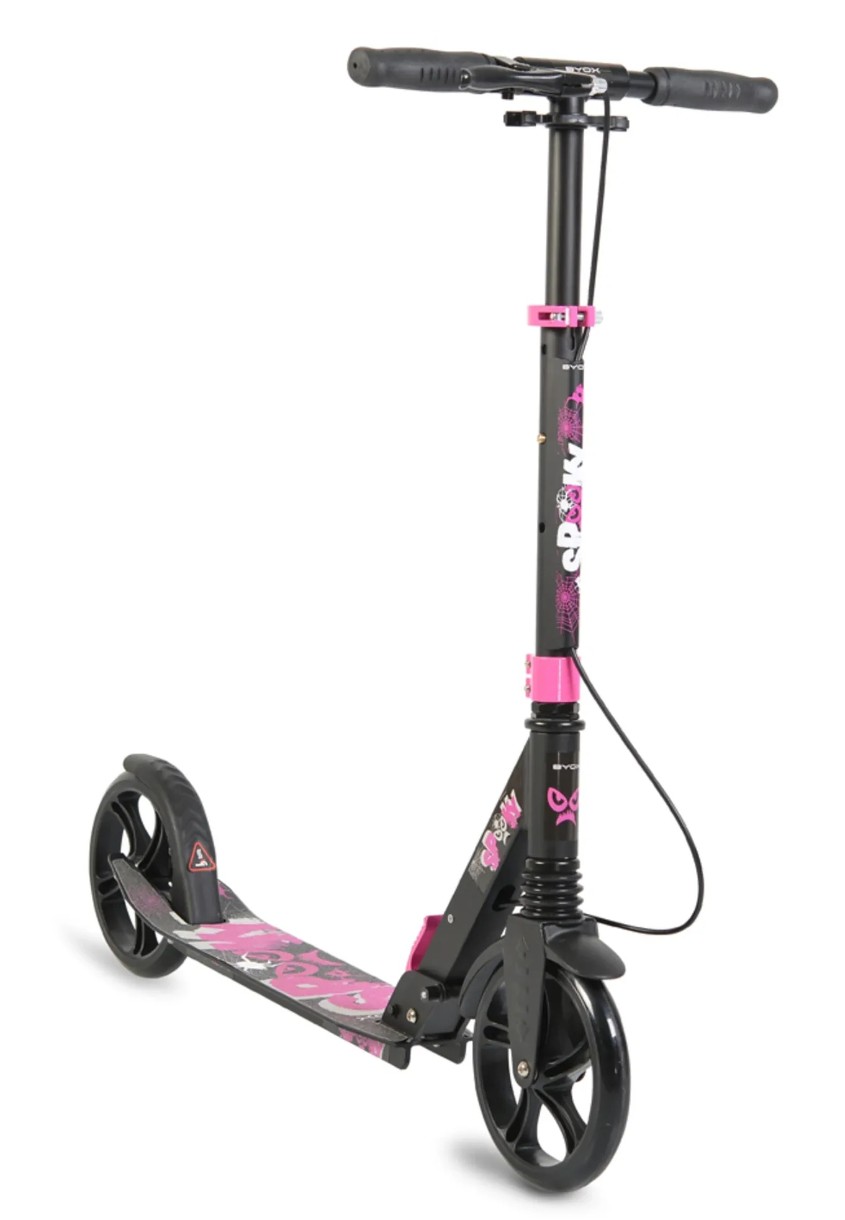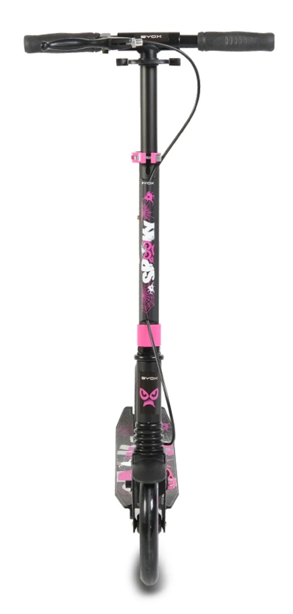 Складной алюминиевый самокат Spooky с полиуретановыми колесами размером 200x30 мм, идеально подходит для детей от 8 лет и старше. Этот самокат предлагает надёжность и комфорт, обеспечивая плавную езду и простоту использования благодаря своим продуманным характеристикам.