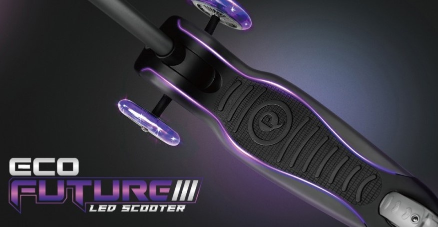 С этим сверхпрочным самокатом QPlay Future Eco Purple ваш ребенок может отправиться в приключение! Самокат имеет два передних колеса со светодиодной подсветкой, что придает скутеру яркий вид.