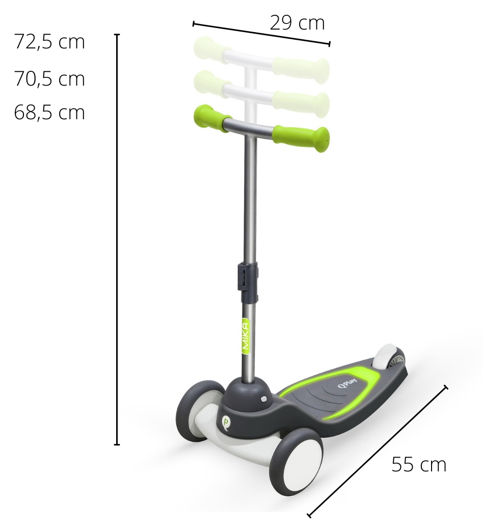 Этот трехколесный самокат помогает и учит детей находить равновесие. QPlay Mika Scooter отлично подойдет как дома, так и в поездках — занимает мало места. Легкая и прочная конструкция гарантирует безопасность и удобство использования. Несомненным плюсом является регулируемый руль по росту ребенка.