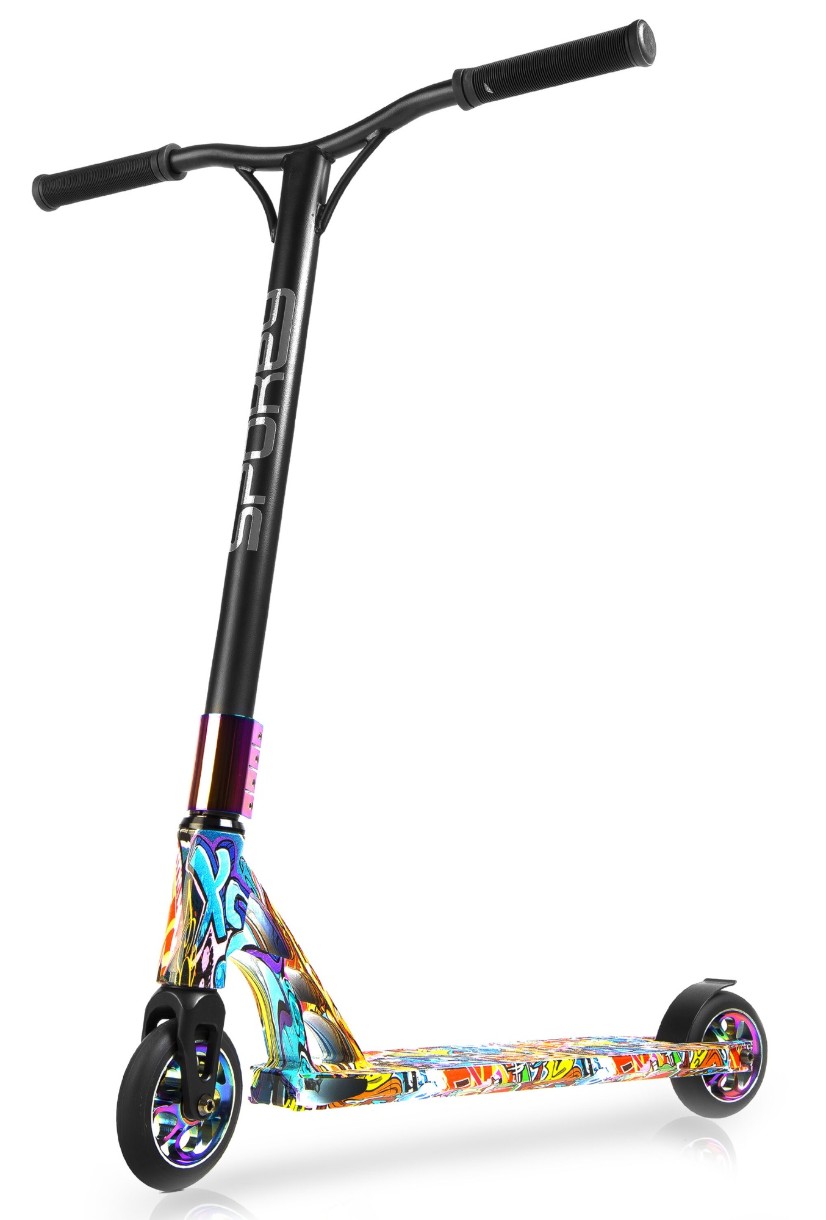 Если вы ищете самокат для фристайла, который будет сопровождать вас при прыжках с большой высоты, преодолении различных городских препятствий или выполнении сальто и других трюков в скейт-парке, выбирайте профессиональный трюковый самокат! Spokey CHAMELEON сверхлегкий и в то же время прочный, благодаря чему вам не страшны высокие нагрузки, возникающие в результате эффективной и требовательной езды.