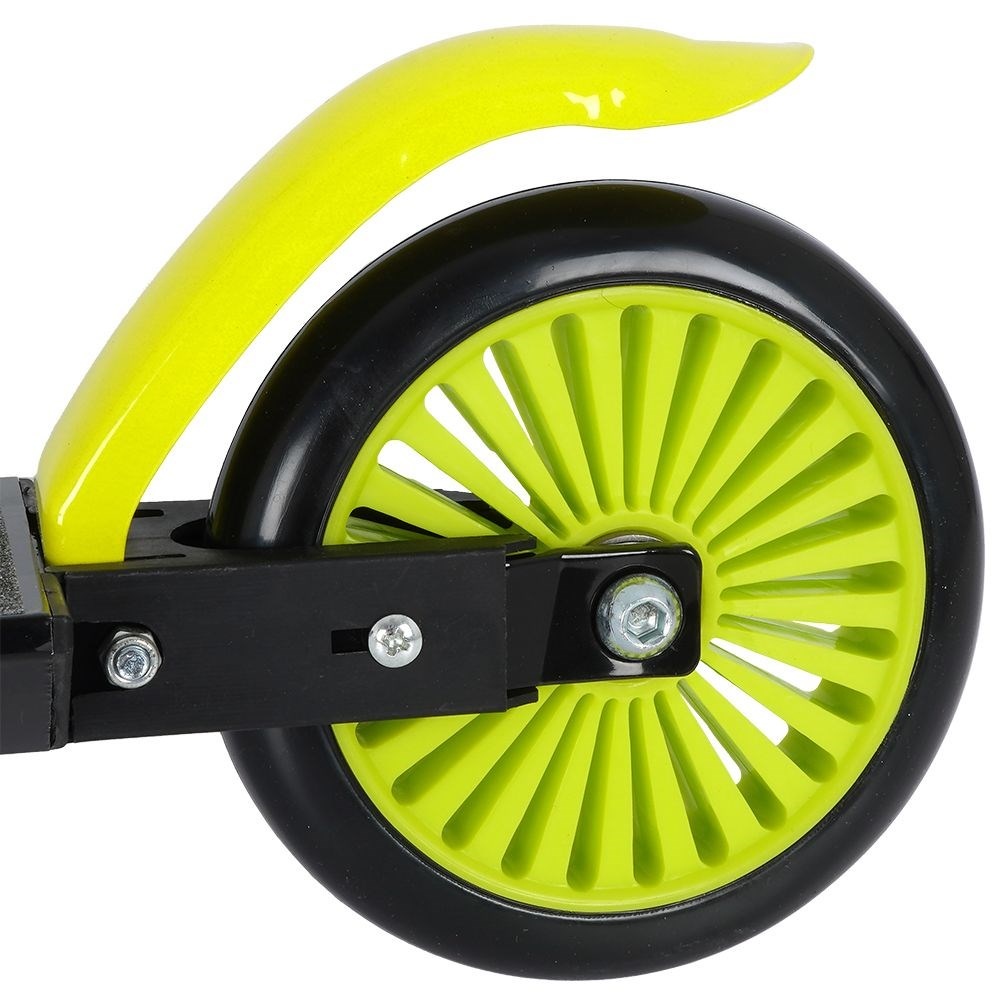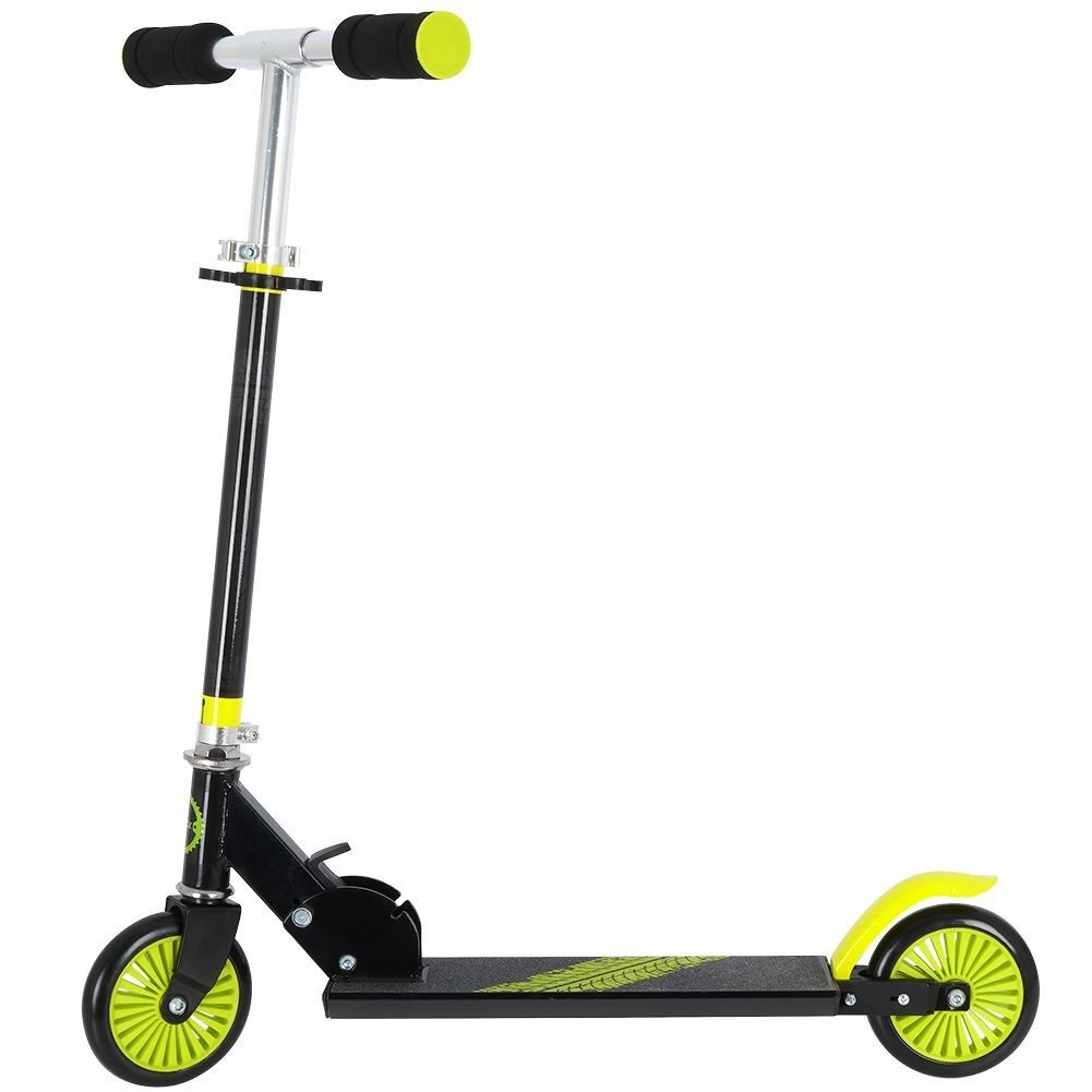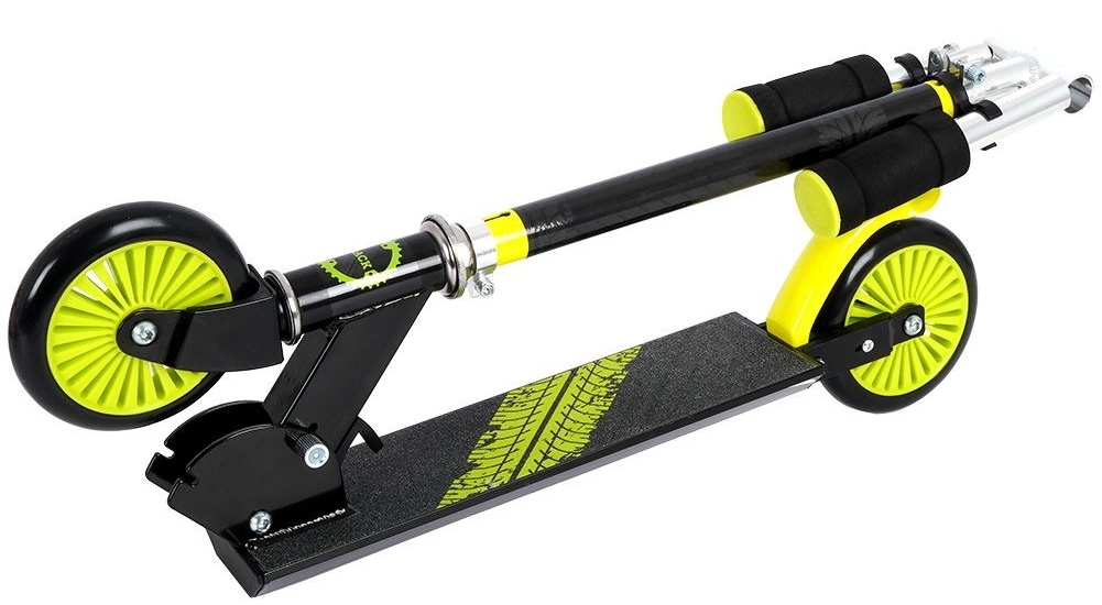 Благодаря алюминиевой конструкции он очень легкий. Практичная нескользящая платформа, ножной тормоз и удобные ручки обеспечивают комфортное использование. Скутер складывается, поэтому его очень легко транспортировать, а его складывание и раскладывание не вызывает никаких проблем. Благодаря регулируемому по высоте рулю самокат можно использовать несколько лет.