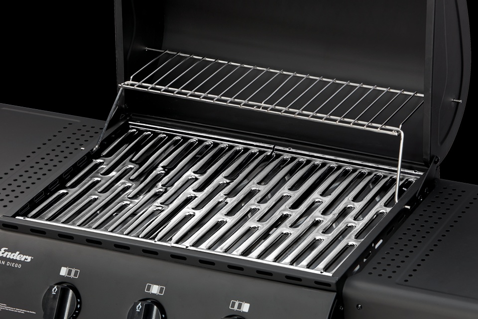 Газовый гриль Enders® San Diego 3 — идеальный гриль для небольших патио или балконов. Гриль предлагает просторную решетку и места для хранения с минимальной занимаемой площадью. Площадка для гриля размером 50,5 см х 14,5 см подходит для нескольких человек.