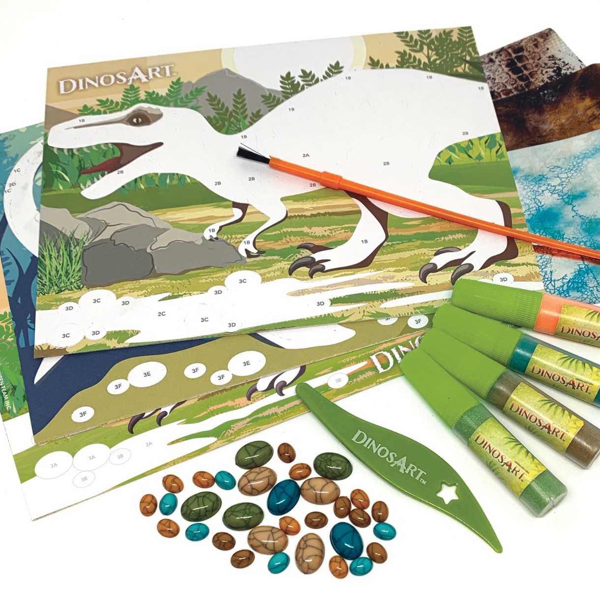Комплектация3 доски для украшения, 4 тюбика цветного песка, 3 фактурных листа фольги, драгоценные камни с эффектом натурального камня, инструмент для переноса и кисть, цветовые инструкции