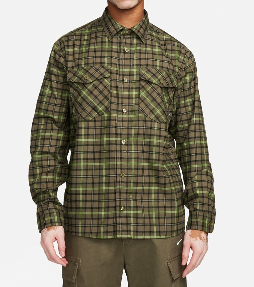 Мужская рубашка Nike U Nk Sb Flnl Ls Wvn Button Up Medium Olive/Cargo Khaki, s.M