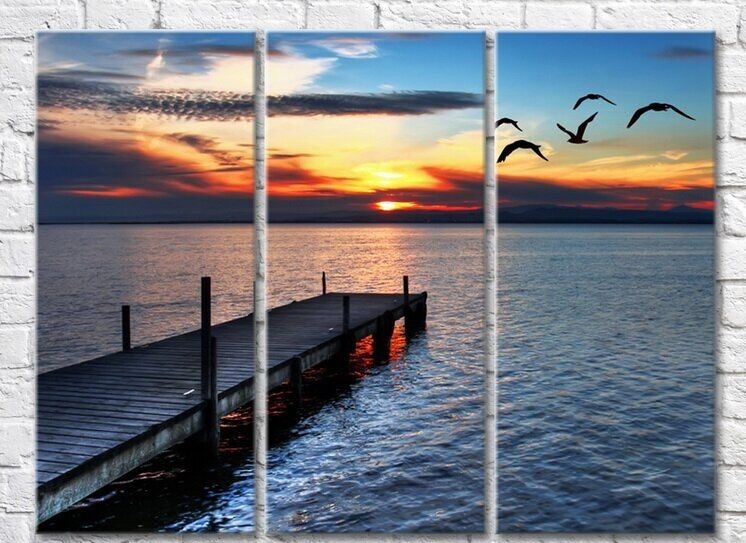 Картина Rainbow Sea pier and birds at sunset (3469156)