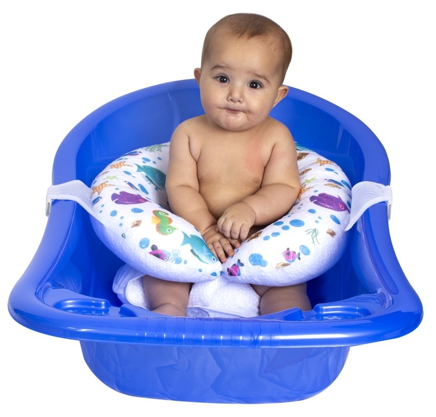 В первые месяцы можно использовать только матрасик (до 4 месяцев) или сетку с матрасиком вместе (до 7 месяцев), укрепив ее с помощью широких крючков к краям ванночки для удобной поддержки малыша во время купания. Когда ребенок подрастет - матрасик можно использовать для поддержки ребенка в ванночке в сидячем положении (до 2 лет).