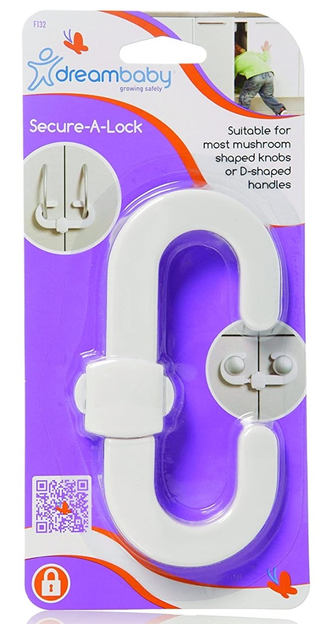 Замок на дверцы Secure-a-Lock DreamBaby не позволяет ребёнку открыть дверцу шкафчика, защитит от травм при защемлении, а также от беспорядка.