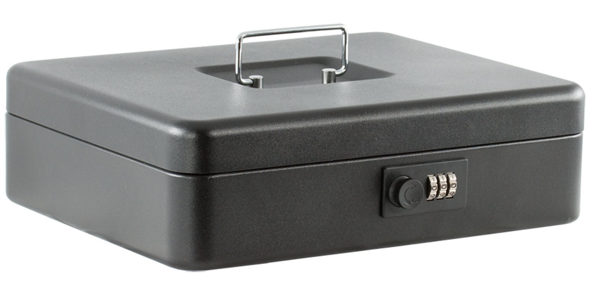 Бокс для денег – важный инструмент для надежного хранения Ваших сбережений! Боксы для денег BUROMAX – предназначены для использования в кассе, бухгалтерии, комнате безопасности, в офисе, на складе и т.д.. Изготовлены из качественной стали толщиной 0,8 мм с прочным порошковым покрытием в черный матовый цвет. Закрываются на кодовый трехразрядный замок. Съёмный лоток с отделениями для монет и купюр, а также, складывающейся металлической ручкой.