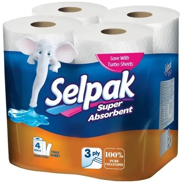 Бумажные полотенца Selpak Super Absorbent 3 слоя 3+1 рулона