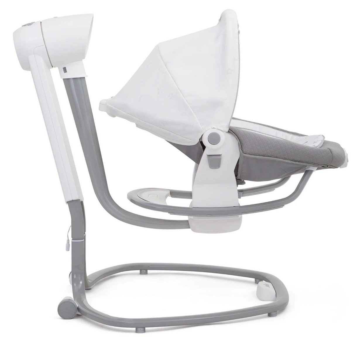 Joie Serina 2in1 - электронные качели 2в1, колыбелька снимается и ее можно использовать отдельно как шезлонг. Колыбель вращается на основании на 90 градусов влево и вправо, таким образом качания могут быть как поперечными, так и продольными. Спинка самой колыбели имеет 3 положения, для комфортного сна, отдыха и сидения. Скорость укачивания - 6 уровней. Чтобы переместить качели, достаточно встать сзади, наклонить на себя конструкция и вести за собой на колесиках в нужное место.