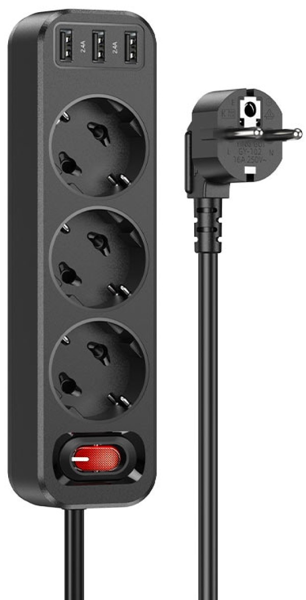 Сетевой фильтр Hoco NS2 1.8m Black