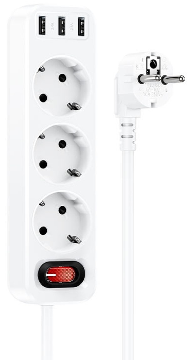 Сетевой фильтр Hoco NS2 1.8m White