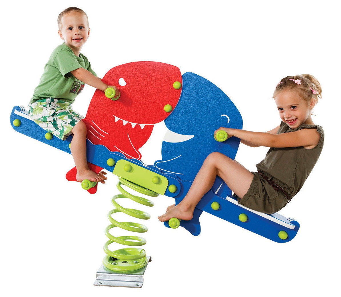 Качалка на пружинк ‘shark twins’ – это уникальный дизайн, соединяющий в себе черты пружинной качалки и качели балансира. Панели и пружина поставляются в разобранном виде. Усиленные пластиковые ручки и подставки для ног имеют анти-скользящую форму. В серии использована более мощная пружина: толщина прута 20 мм, диаметр 200 мм, высота 400 мм.