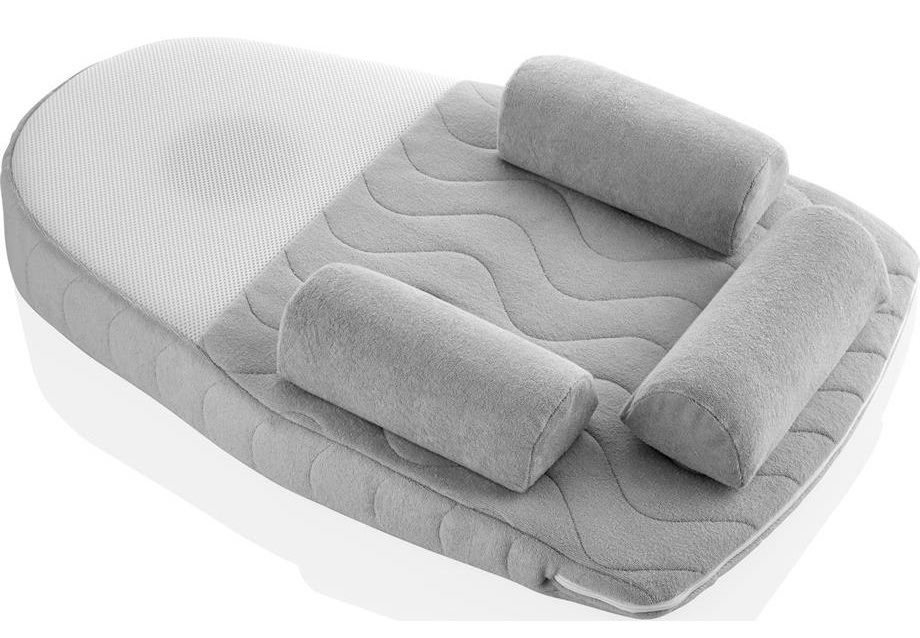 В комплекте наклонная подушка, опора для ног и сумка с косточками вишни. Матрас имеет карман для хранения мешочка с вишневыми косточками, роль которого заключается в сохранении тепла в течение длительного времени, мягком согревании живота и, таким образом, облегчении любых болей и дискомфорта, вызванных коликами. В области головы особый наклон и его форма были специально разработаны таким образом, чтобы давление распределялось по всей поверхности черепа ребенка.