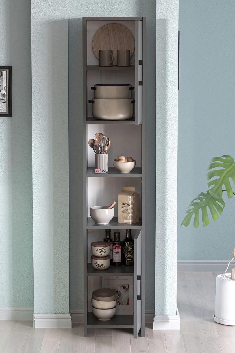 6 полок позволяют удобно разместить посуду, продукты, бытовые принадлежности и аксессуары, а 2 дверцы помогают скрыть содержимое и поддерживать аккуратный внешний вид.
